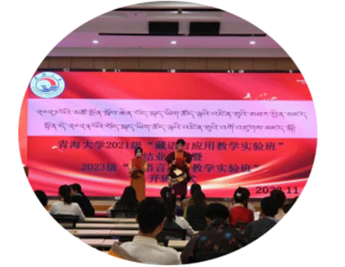 2023年11月11日,青海省情研究中心在智慧大厦负一楼报告厅圆满完成2021级“藏语言应用教学实验班”结业典礼暨2023级新生开班仪式。